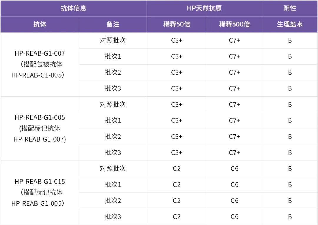 對菲鵬生物三株抗體HP-REAB-G1-007、HP-REAB-G1-005和HP-REAB-G1-015分別進(jìn)行三批生產(chǎn),經(jīng)性能驗(yàn)證后表明:以上抗體三批之間不存在批間差異,重復(fù)性優(yōu)。