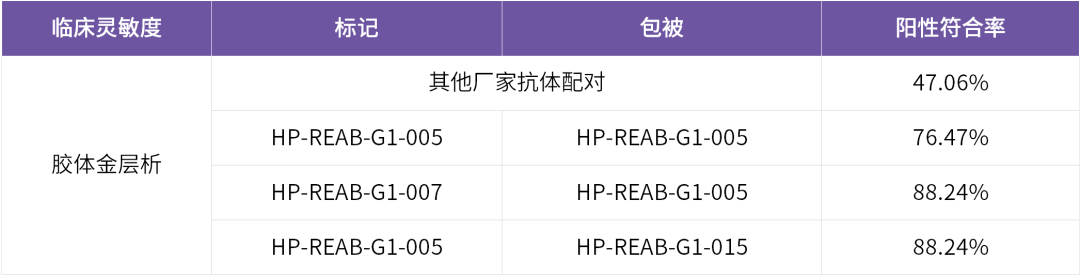 菲鵬生物HP抗體配對在膠體金層析平臺(tái)上臨床樣本陽性符合率較高。