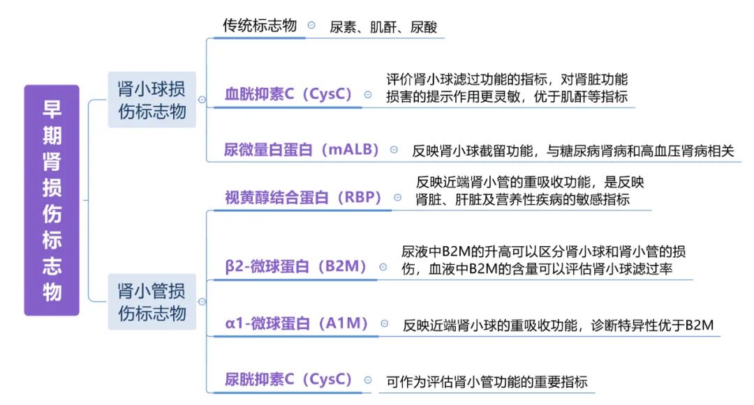 對(duì)于腎臟病的診斷,目前醫(yī)院和體檢中心基本都配有腎功能檢查套餐,定期檢測(cè)可以輔助診斷腎臟的狀態(tài)。在腎功能的檢測(cè)項(xiàng)目中,目前國(guó)內(nèi)應(yīng)用最廣泛、臨床意義最為明確的腎功能診斷項(xiàng)目一般包括八項(xiàng),即肌酐(Crea)、尿素(Urea)、胱抑素C(CysC)、尿酸(Urea Acid)、微量白蛋白(mALB)、β2-微球蛋白(B2M)、α1-微球蛋白(A1M)和視黃醇結(jié)合蛋白(RBP),簡(jiǎn)稱 CUCUMBAR。具體的腎功能診斷效果簡(jiǎn)單歸納如下: