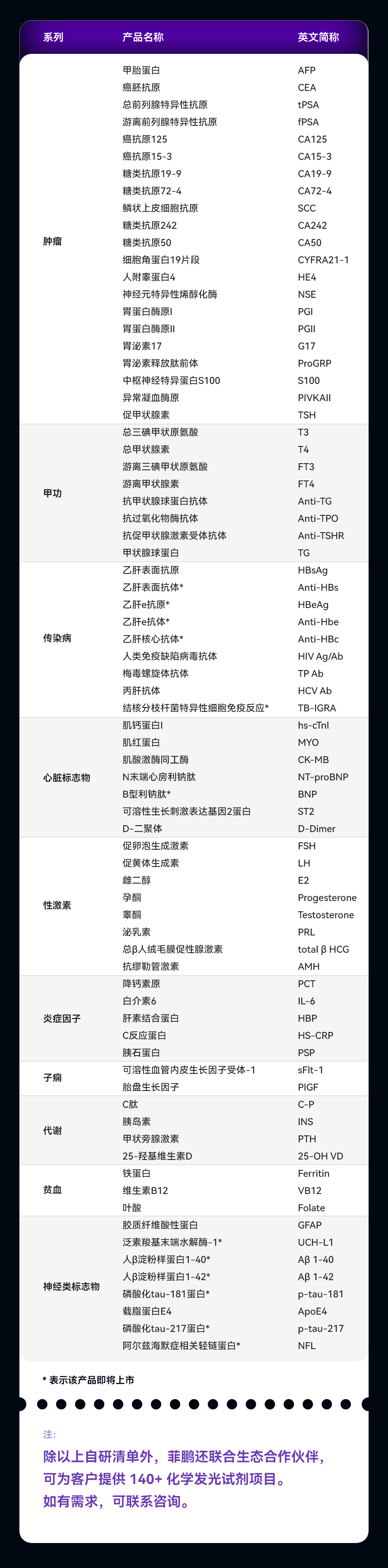 四、菲鵬生物化學(xué)發(fā)光試劑解決方案清單(AE)